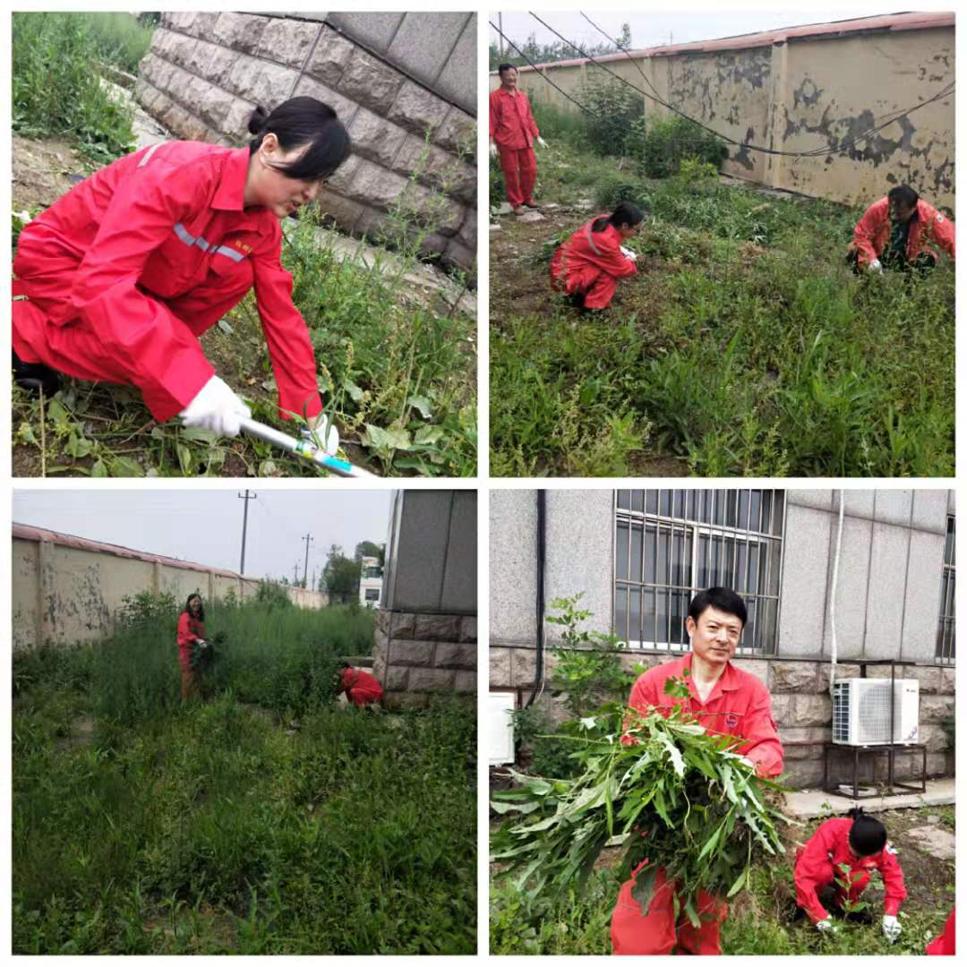 夏季是杂草生长旺盛的季节,加之刚刚下过一场雨,厂区绿地的杂草长得很快。为美化我们的公司,打造一个清洁有序的办公环境,增强大家的劳动观念和环保意识,锻炼和培养员工积极向上,团结协作的精神,提高中层管理者的模范带头作用。7月17日上午,公司各科室在紧张的工作之余组织了一次有意义的拔草活动,除有重要工作任务的人员,其余各部门人员积极参与了此项活动。由公司党政办牵头,各科室成员换上刚刚定做的新工衣,开始拔草除草活动。